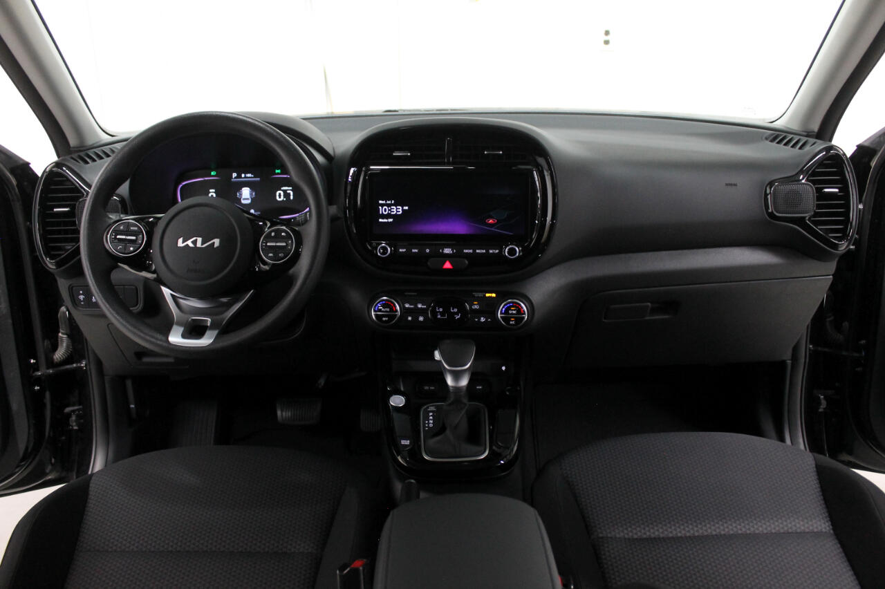 2023 Kia Soul S in Fusion Black with Black Cloth Upholstery. This Soul is a ONE OWNER with an ACCIDENT FREE AUTOCHECK HISTORY REPORT that has been completely serviced along with a FRESH OIL CHANGE and has passed our detailed 139-point reconditioning process performed by our dedicated technicians and detail specialists.