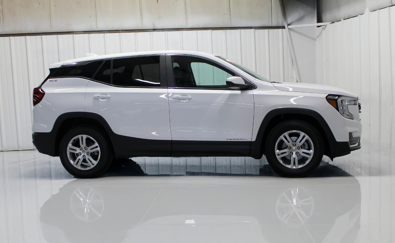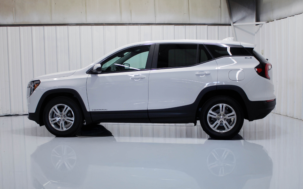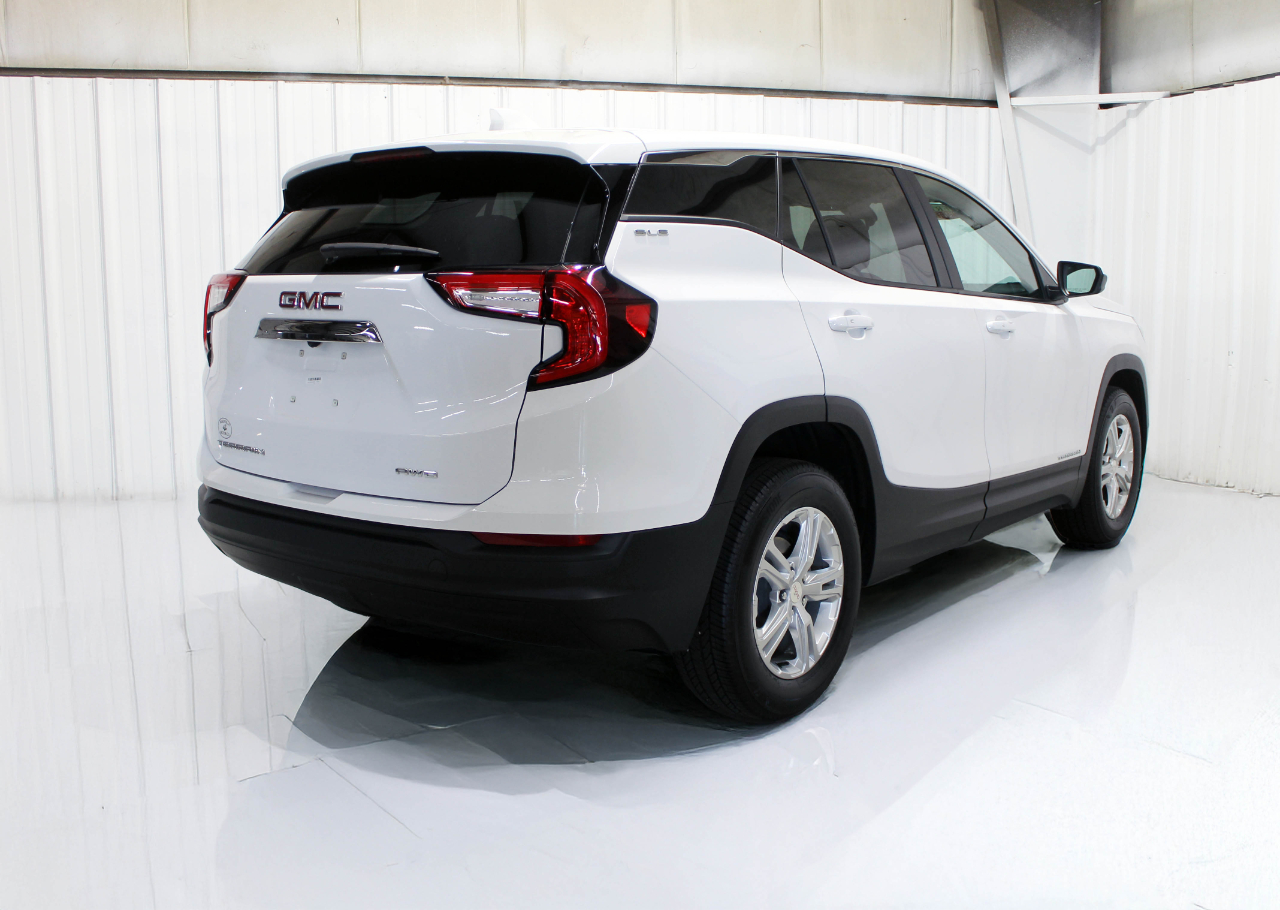2024 GMC Terrain SLE AWD in Summit White with Jet Black Cloth Upholstery. This Terrain is a ONE OWNER with an ACCIDENT FREE AUTOCHECK HISTORY REPORT that has been completely serviced along with a FRESH OIL CHANGE and has passed our detailed 139-point reconditioning process performed by our dedicated technicians and detail specialists.
